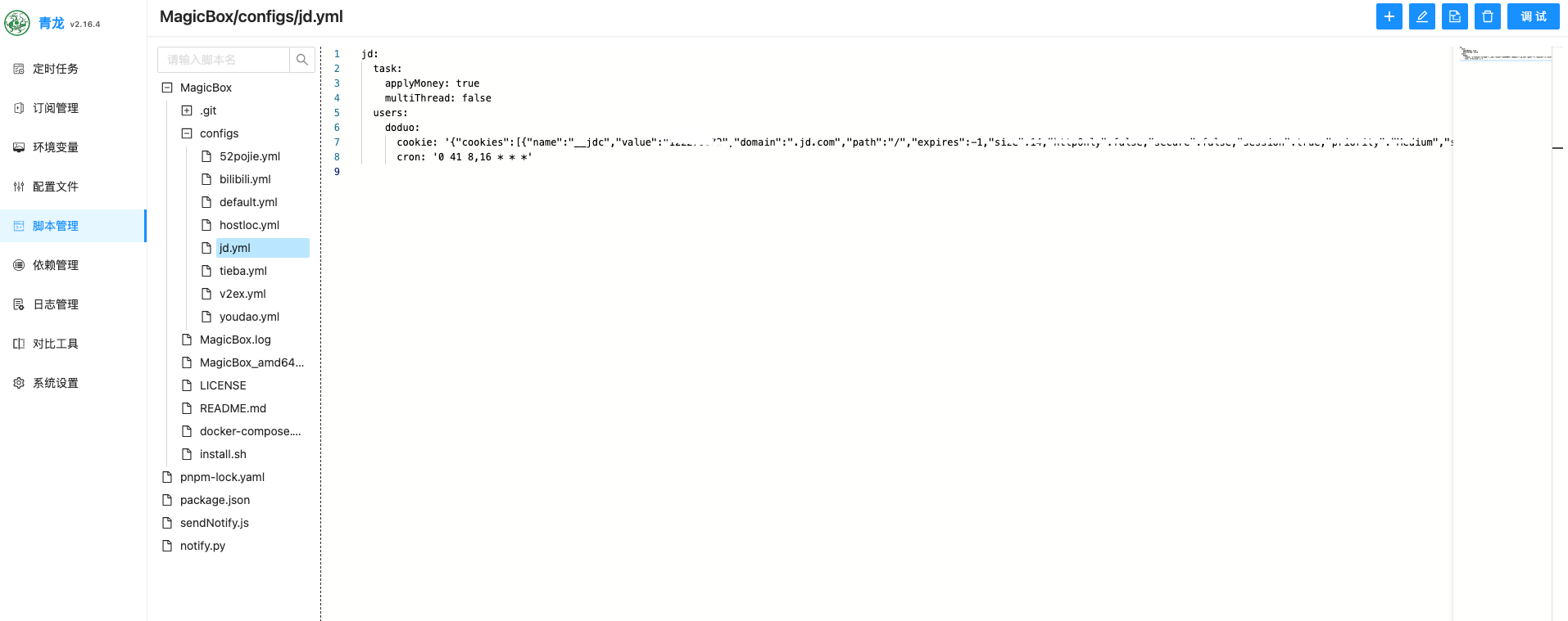 京东2023年双十一已于10月23日20点开启,借着宣传下magicbox自动价保。在上周,magicbox已接入了青龙面板,好处是以后改配置相关的内容不需要再登录服务器了,同时也方便了每个任务的执行情况。接下来将以京东价保任务为例将magicbox配置在青龙面板。